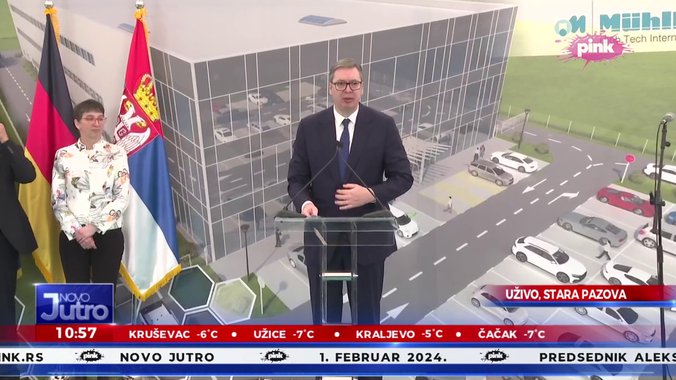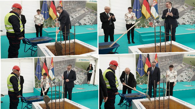 "To je velika stvar za našu zemlju, 9 milijarde je trgovinska razmena naše zemlje sa Nemačkom. Nemačka je u svakom smislu za nas najvažniji i najveći partner. To za nas donosi ogromnu korist, preko 80.000 ljudi radi u nemačkim kompanijima kod nas. U ovoj fabrici radiće oko 150 ljudi sa prosečnom platom oko 900 evra", kaže Vučić.